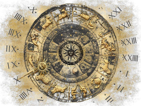 Zodiac Calendar I Black Ornate Wood Framed Art Print with Double Matting by Jeffries, Oliver