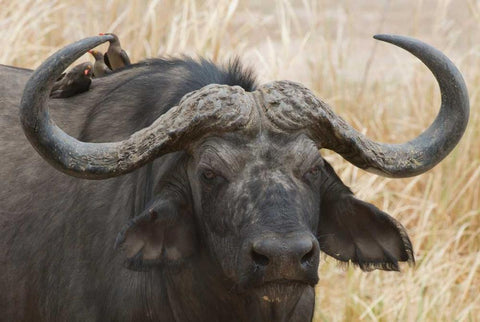 Cape Buffalo and Red Billed Oxpeckers Black Ornate Wood Framed Art Print with Double Matting by Bennion, Scott
