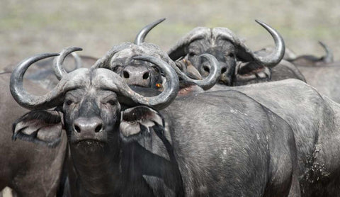 Cape Buffalos and Friend Black Ornate Wood Framed Art Print with Double Matting by Bennion, Scott