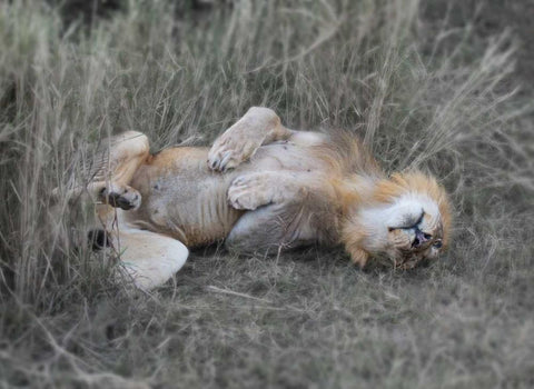 Lion on his back Black Ornate Wood Framed Art Print with Double Matting by Bennion, Scott