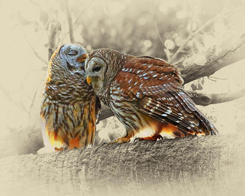 Barred Owls Black Ornate Wood Framed Art Print with Double Matting by Brown, Jim