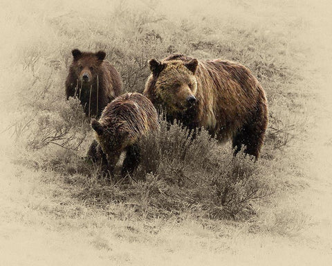 Grizzly Family Black Ornate Wood Framed Art Print with Double Matting by Brown, Jim