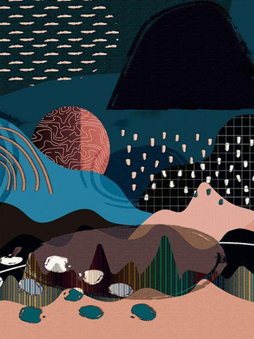 Mid Century Landscape 481 Black Ornate Wood Framed Art Print with Double Matting by Bolokofsky, Ronald