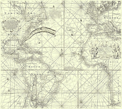 Europe Africa America - Wright 1768 Black Ornate Wood Framed Art Print with Double Matting by Wright