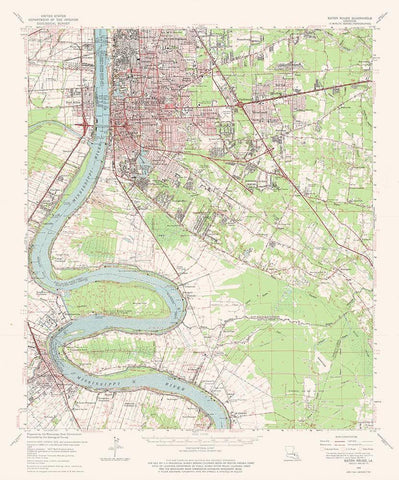 Baton Rouge Louisiana Quad - USGS 1963 Black Ornate Wood Framed Art Print with Double Matting by USGS