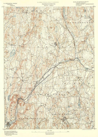 Barre Massachusetts Sheet - USGS 1890 Black Ornate Wood Framed Art Print with Double Matting by USGS
