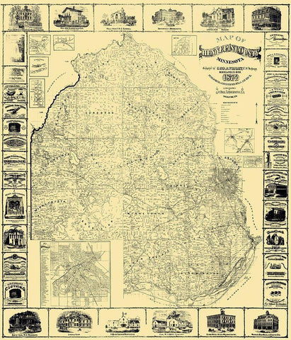 Hennepin Minnesota Landowner - Wright 1874 Black Ornate Wood Framed Art Print with Double Matting by Wright