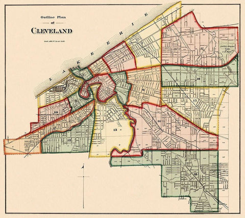 Cleveland Ohio Index - Titus 1874 Black Ornate Wood Framed Art Print with Double Matting by Titus