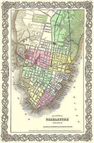 Charleston South Carolina - Colton 1855 Black Ornate Wood Framed Art Print with Double Matting by Colton