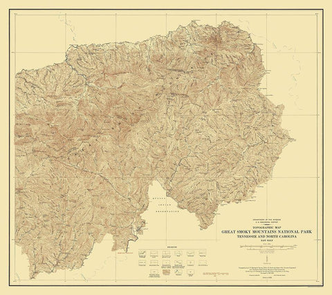 Great Smoky Mountains Tennessee - USGS 1934 Black Ornate Wood Framed Art Print with Double Matting by USGS