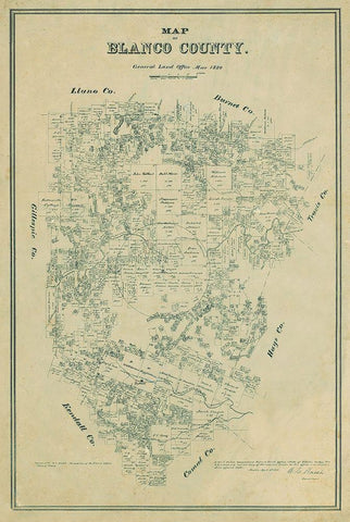 Blanco County Texas - Walsh 1880 Black Ornate Wood Framed Art Print with Double Matting by Walsh
