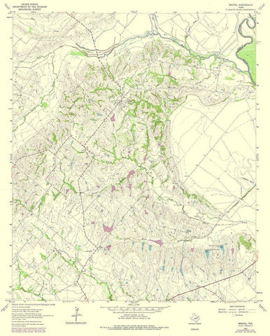 Bristol Texas Quad - USGS 1962 Black Ornate Wood Framed Art Print with Double Matting by USGS