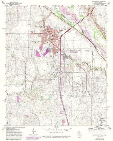 Burkburnett Texas Quad - USGS 1972 Black Ornate Wood Framed Art Print with Double Matting by USGS