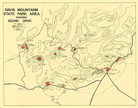 Davis Mountains State Park Texas - Swartz 1935 Black Ornate Wood Framed Art Print with Double Matting by Swartz