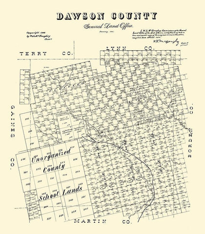 Dawson County Texas - McGaughey 1892 Black Ornate Wood Framed Art Print with Double Matting by McGaughey