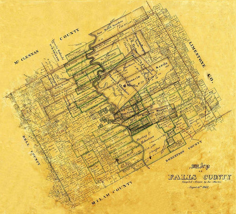 Falls County Texas - Martin 1868 Black Ornate Wood Framed Art Print with Double Matting by Martin