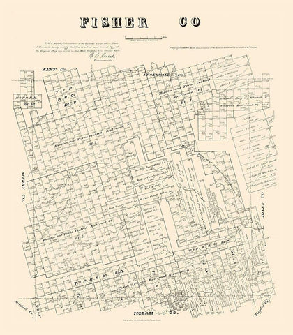 Fisher County Texas - Walsh 1880 Black Ornate Wood Framed Art Print with Double Matting by Walsh