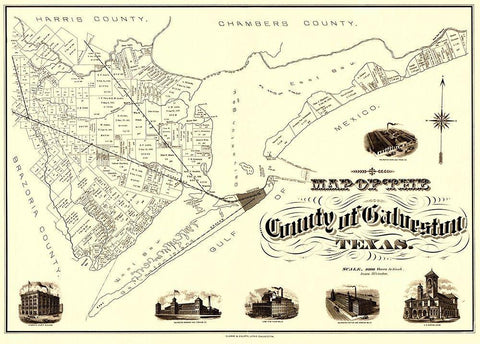 Galveston Texas - Clarke 1902 Black Ornate Wood Framed Art Print with Double Matting by Clarke