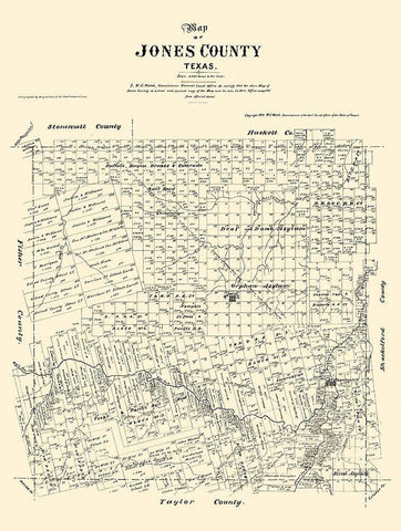 Jones County Texas - Walsh 1879 Black Ornate Wood Framed Art Print with Double Matting by Walsh