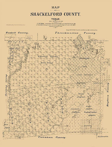 Shackelford County Texas - Walsh 1879 Black Ornate Wood Framed Art Print with Double Matting by Walsh