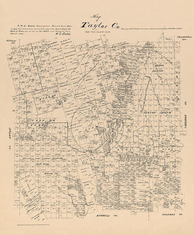 Taylor County Texas - Walsh 1879  Black Ornate Wood Framed Art Print with Double Matting by Walsh