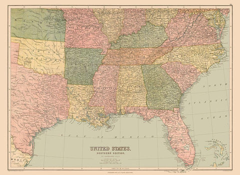 Southern Section of US - Black 1867 Black Ornate Wood Framed Art Print with Double Matting by Black