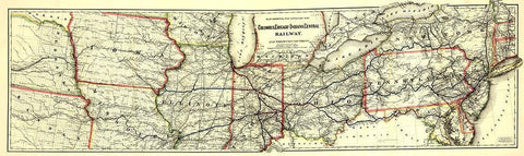 Columbus, Chicago and Indiana Central Railway 1868 Black Ornate Wood Framed Art Print with Double Matting by Colton