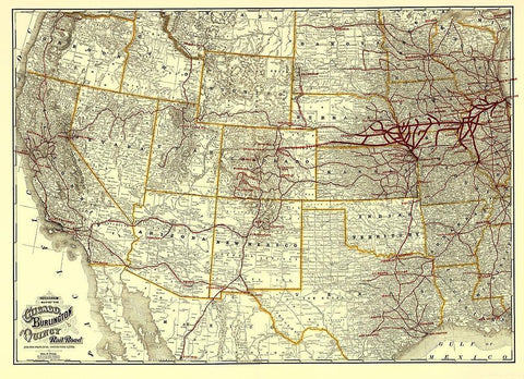 Chicago, Burlington and Quincy Railroad 1881 Black Ornate Wood Framed Art Print with Double Matting by Cram