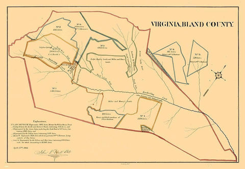 Bland County Virginia - Peck 1866 Black Ornate Wood Framed Art Print with Double Matting by Peck