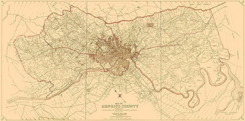 Henrico County Virginia - Crawford 1916 Black Ornate Wood Framed Art Print with Double Matting by Crawford
