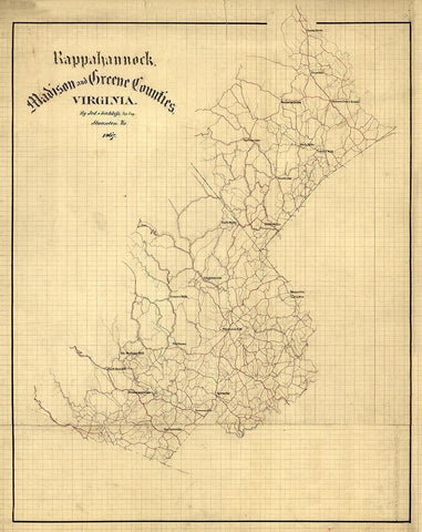 Rappahannock County Virginia - Hotchkifs 1867 Black Ornate Wood Framed Art Print with Double Matting by Hotchkifs