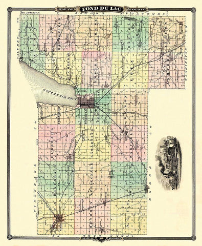 Fond Du Lac Wisconsin Landowner - Snyder 1878 Black Ornate Wood Framed Art Print with Double Matting by Snyder