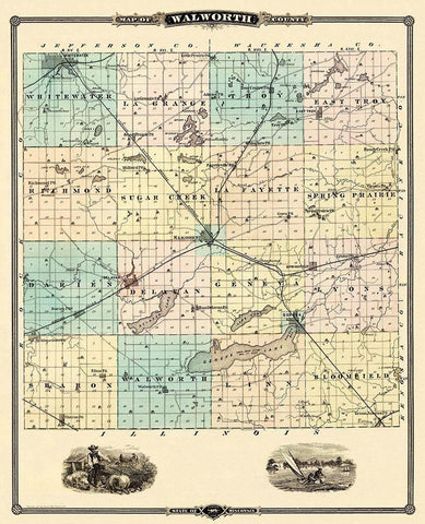 Walworth Wisconsin Landowner - Snyder 1878 Black Ornate Wood Framed Art Print with Double Matting by Snyder