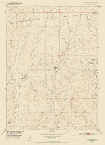Puddle Springs Wyoming Quad - USGS 1952 Black Ornate Wood Framed Art Print with Double Matting by USGS