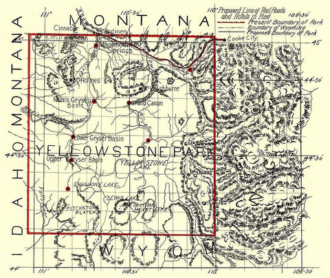 Yellowstone National Park - 1900 Black Ornate Wood Framed Art Print with Double Matting by Unknown