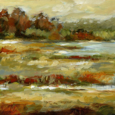 Meadow View I Black Ornate Wood Framed Art Print with Double Matting by Brey