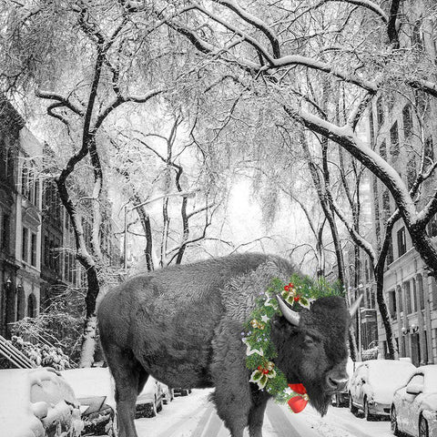 Christmas Buffalo Black Ornate Wood Framed Art Print with Double Matting by Phillip, Jamie