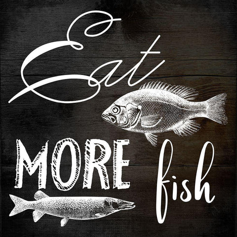Eat More Fish Black Ornate Wood Framed Art Print with Double Matting by Phillip, Jamie
