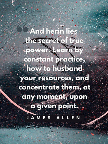 James Allen Quote: True Power Black Ornate Wood Framed Art Print with Double Matting by ArtsyQuotes