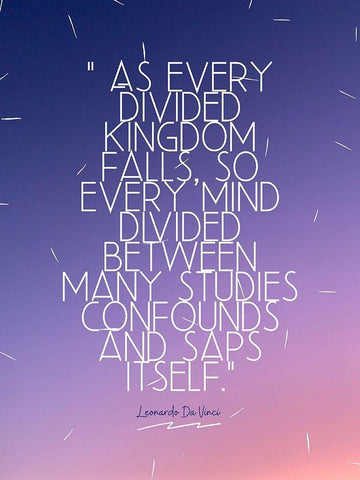Leonardo Da Vinci Quote: Divided Kingdom Black Ornate Wood Framed Art Print with Double Matting by ArtsyQuotes