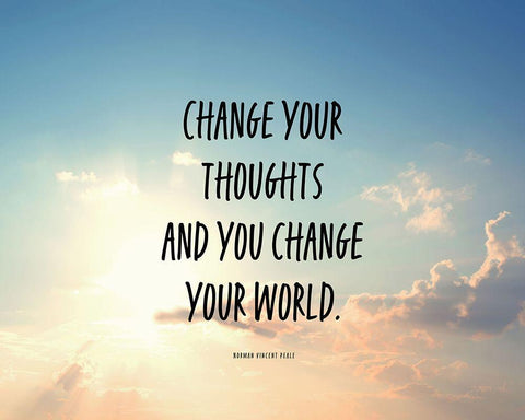 Norman Vincent Peale Quote: Change Your World Black Ornate Wood Framed Art Print with Double Matting by ArtsyQuotes
