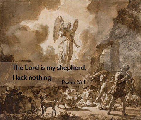 Bible Verse Quote Psalm 23:1, Adriaen van de Velde, The Angel Appearing to the Shepherds Black Ornate Wood Framed Art Print with Double Matting by ArtsyQuotes