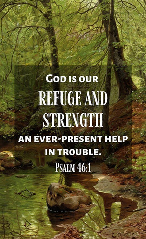 Bible Verse Quote Psalm 46:1, Peder Mork Monsted - A Forest Stream Black Ornate Wood Framed Art Print with Double Matting by ArtsyQuotes