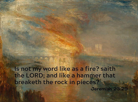 Bible Verse Quote Jeremiah 23:29, Joseph Mallord William Turner - Houses of Lords and Commons Black Ornate Wood Framed Art Print with Double Matting by ArtsyQuotes