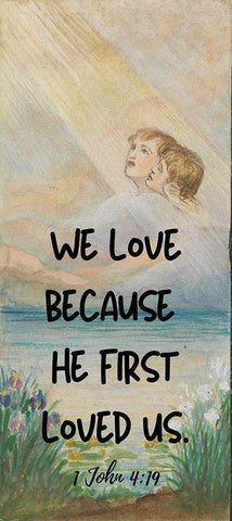 Bible Verse Quote 1 John 4:19, Louis Comfort Tiffany - Design for window 3 Black Ornate Wood Framed Art Print with Double Matting by ArtsyQuotes