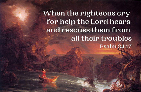 Bible Verse Quote Psalm 34:17, Thomas Cole - The Voyage of Life Manhood Black Ornate Wood Framed Art Print with Double Matting by ArtsyQuotes