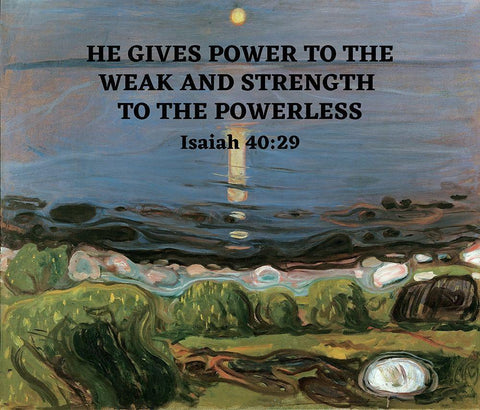 Bible Verse Quote Isaiah 40:29, Edvard Munch - Summer Night by the Beach Black Ornate Wood Framed Art Print with Double Matting by ArtsyQuotes