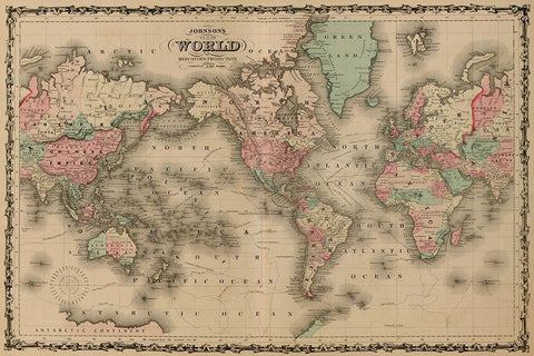 World Map Black Ornate Wood Framed Art Print with Double Matting by Johnson, A.J.