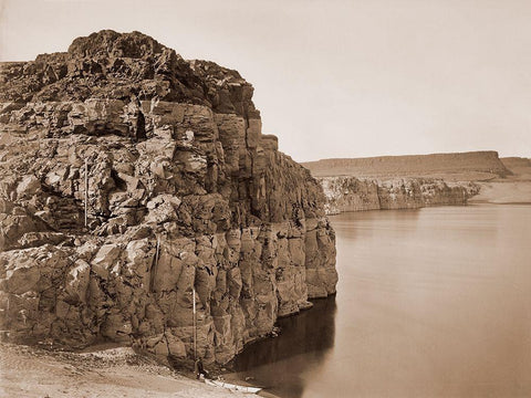 The Dalles, Extremes of High and Low Water, 92 ft./Head of the Dalles, Columbia River, Oregon, about Black Ornate Wood Framed Art Print with Double Matting by Watkins, Carleton