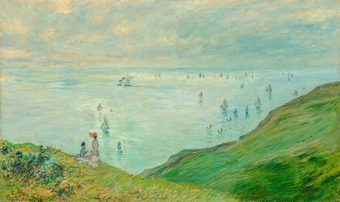 Cliffs at Pourville Black Ornate Wood Framed Art Print with Double Matting by Monet, Claude